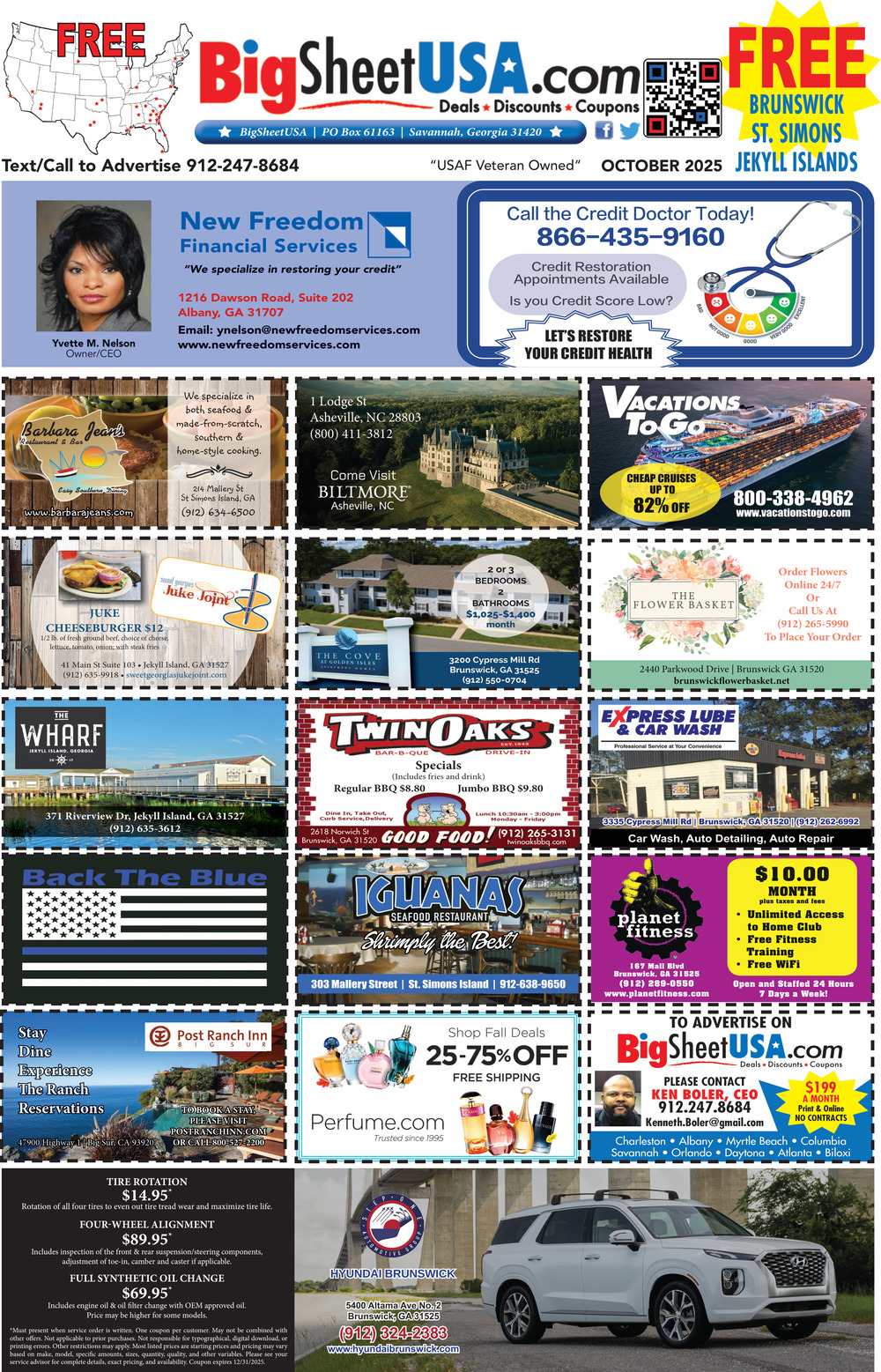 Oct 27, 2025. Big Sheet USA Print / Advertising Ads from Brunswick - St Simons - Jekyll
