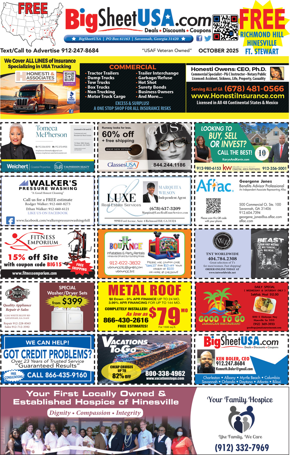 Oct 27, 2025. Big Sheet USA Print / Advertising Ads from Richmond/Hinesville, GA