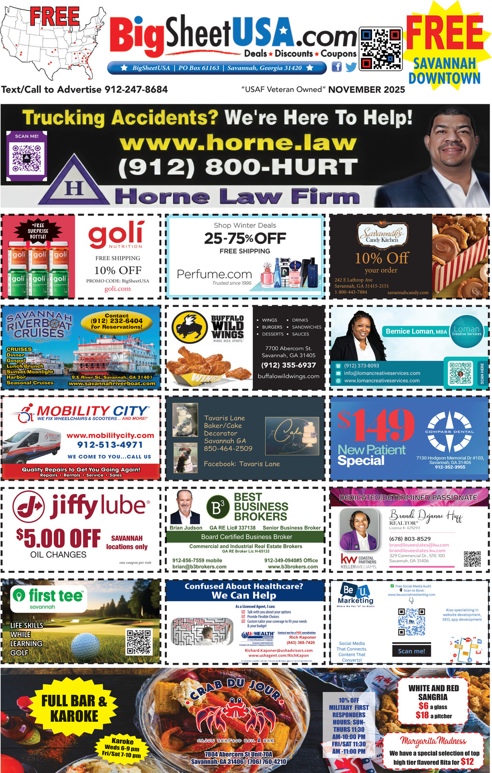Nov 29, 2025. Big Sheet USA Print / Advertising Ads from Savannah, GA