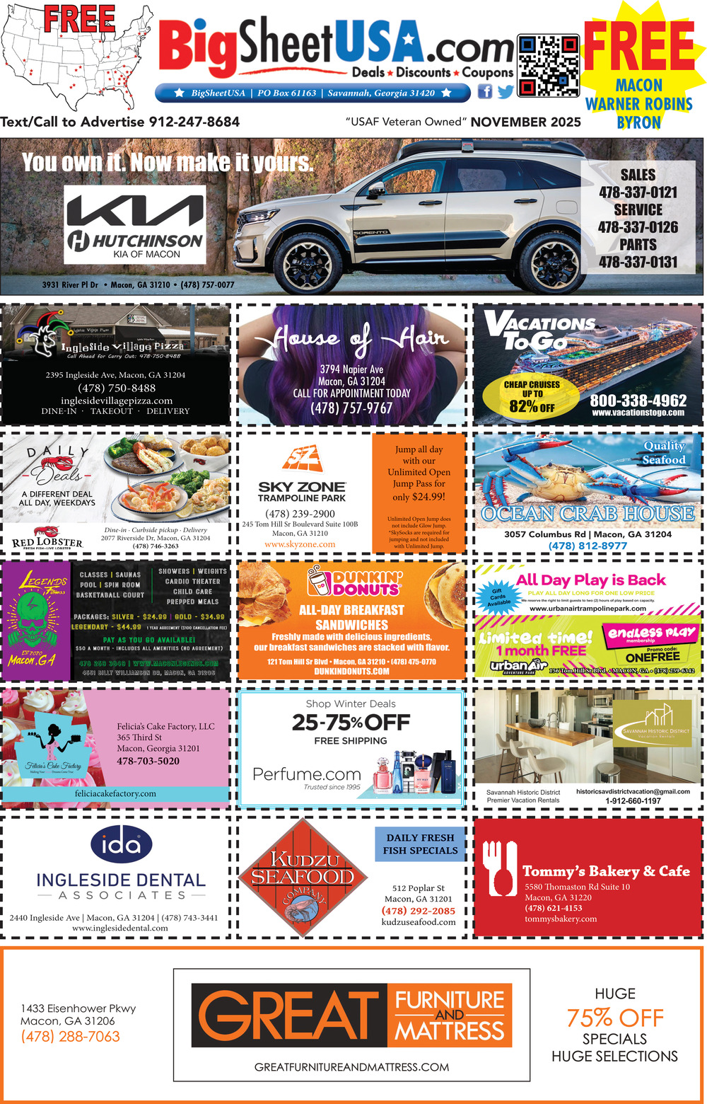 Nov 29, 2025. Big Sheet USA Print / Advertising Ads from Macon - Warner Robins - Byron