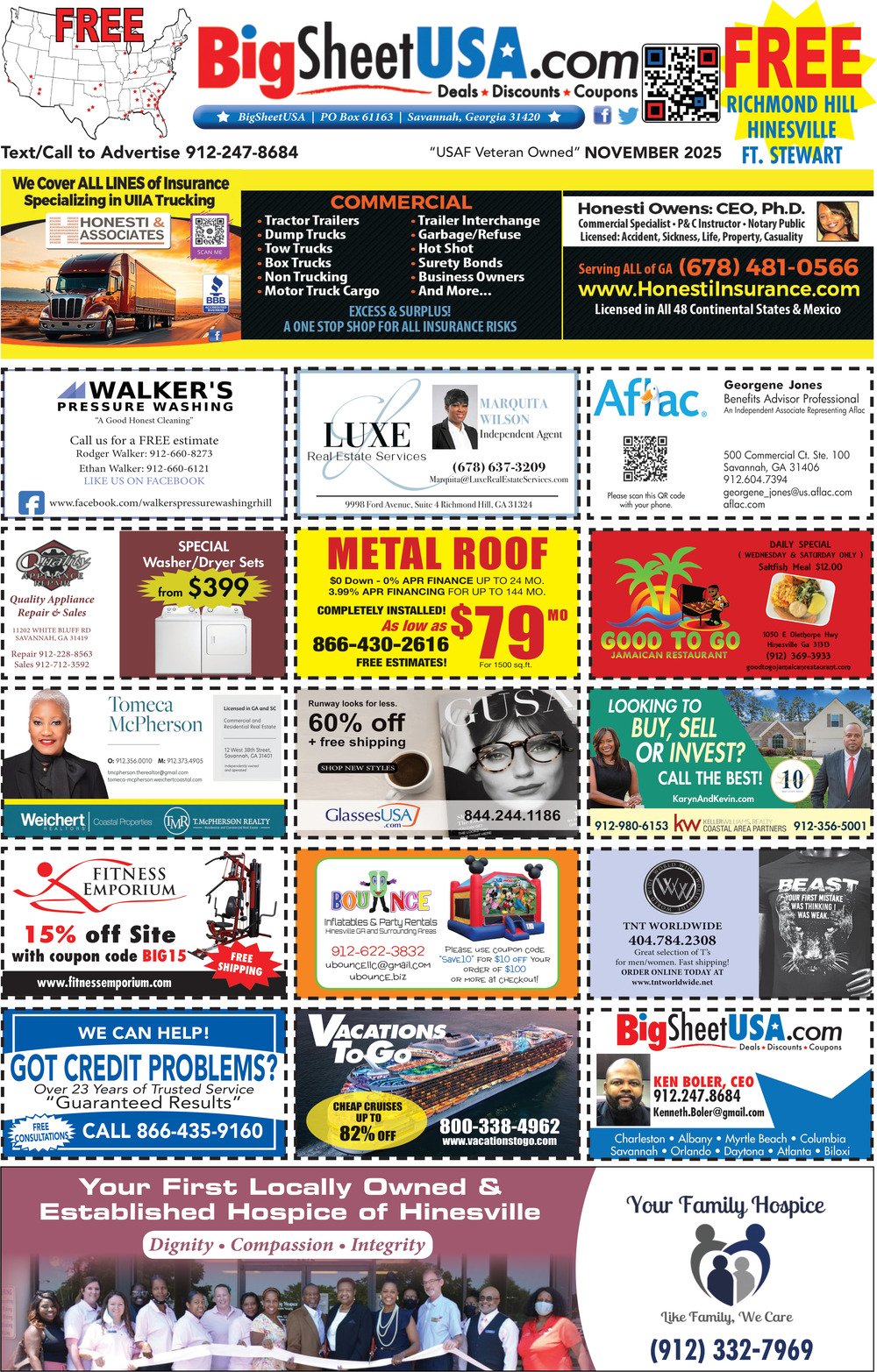 Nov 29, 2025. Big Sheet USA Print / Advertising Ads from Richmond/Hinesville, GA