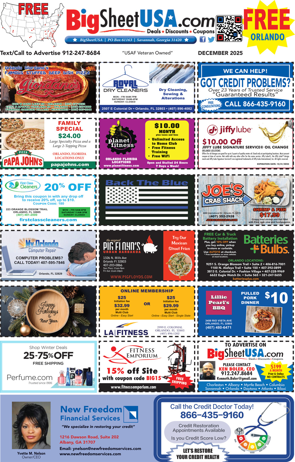 Dec 21, 2025. Big Sheet USA Print / Advertising Ads from Orlando, FL
