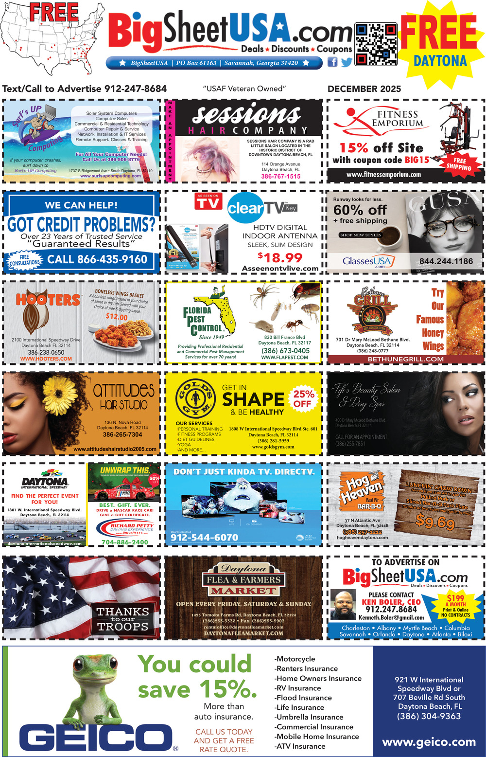 Dec 21, 2025. Big Sheet USA Print / Advertising Ads from Daytona, FL