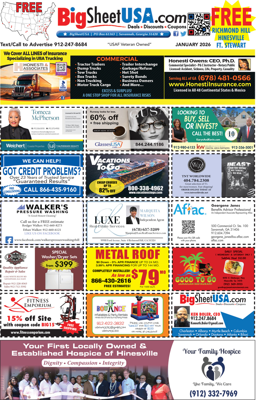 Jan 12, 2026. Big Sheet USA Print / Advertising Ads from Richmond/Hinesville, GA