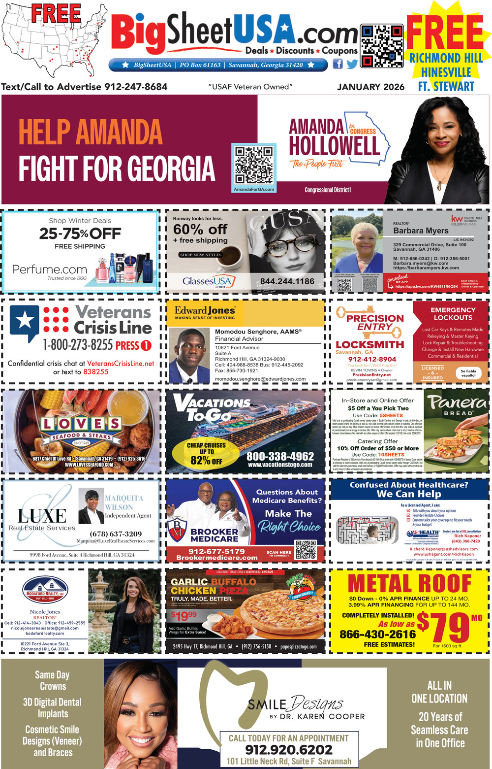 Jan 12, 2026. Big Sheet USA Print / Advertising Ads from Richmond/Hinesville, GA