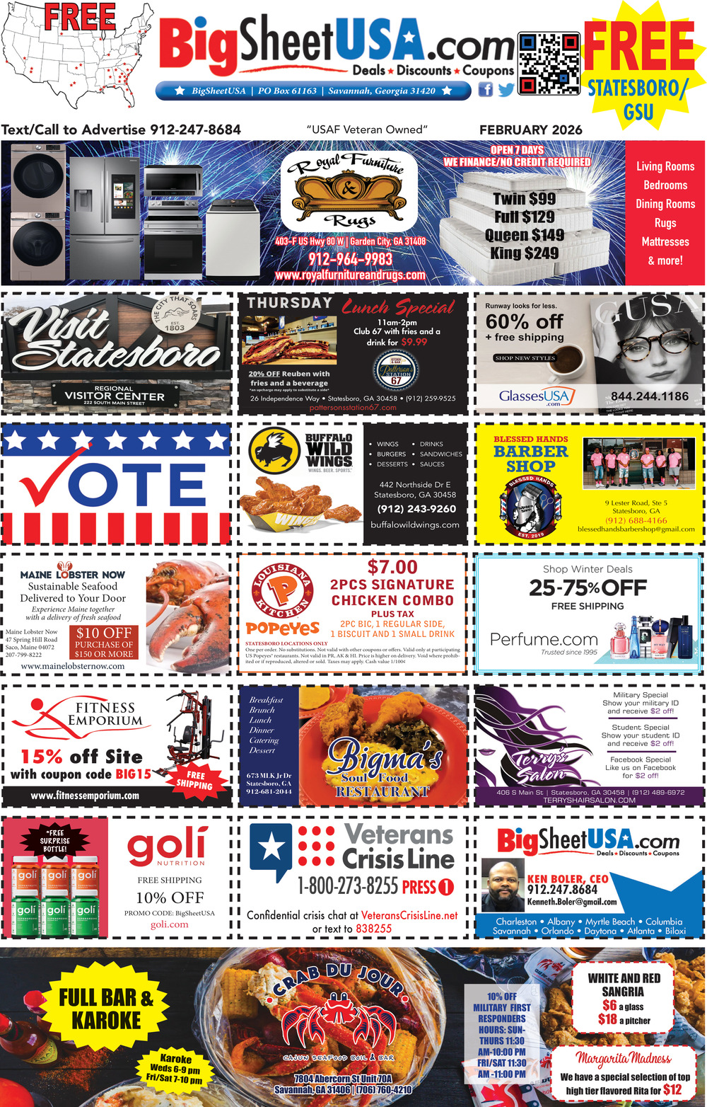 Feb 05, 2026. Big Sheet USA Print / Advertising Ads from Statesboro, GA