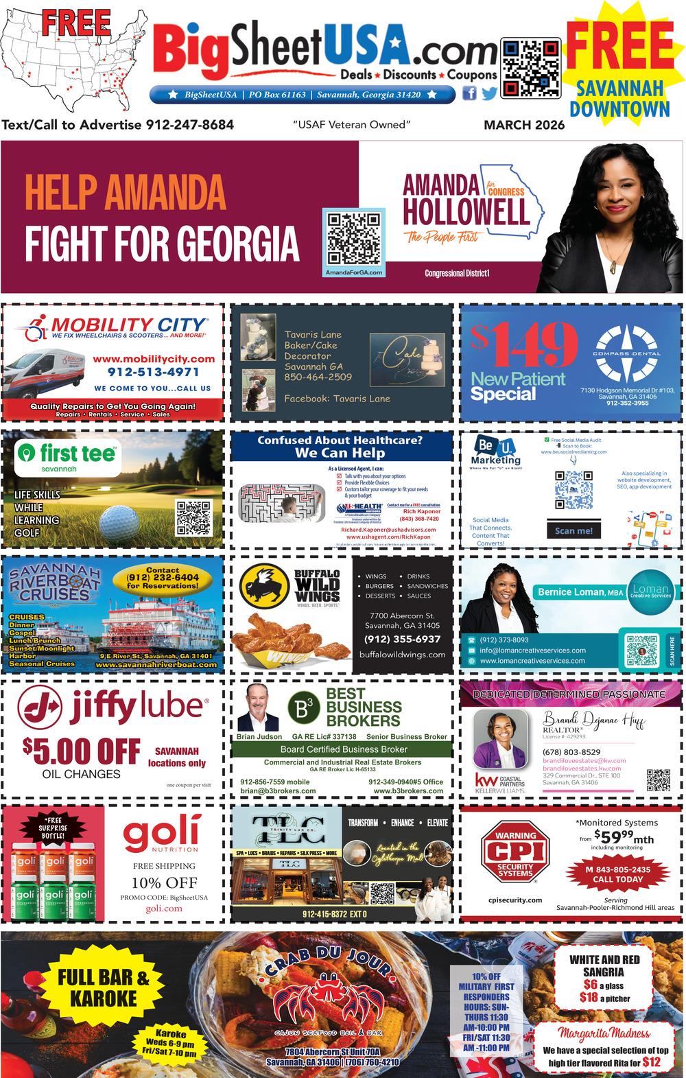 Mar 09, 2026. Big Sheet USA Print / Advertising Ads from Savannah, GA