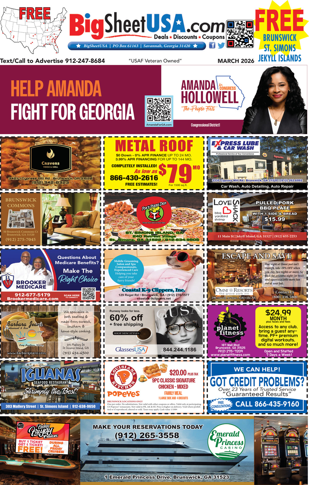 Mar 09, 2026. Big Sheet USA Print / Advertising Ads from Brunswick - St Simons - Jekyll