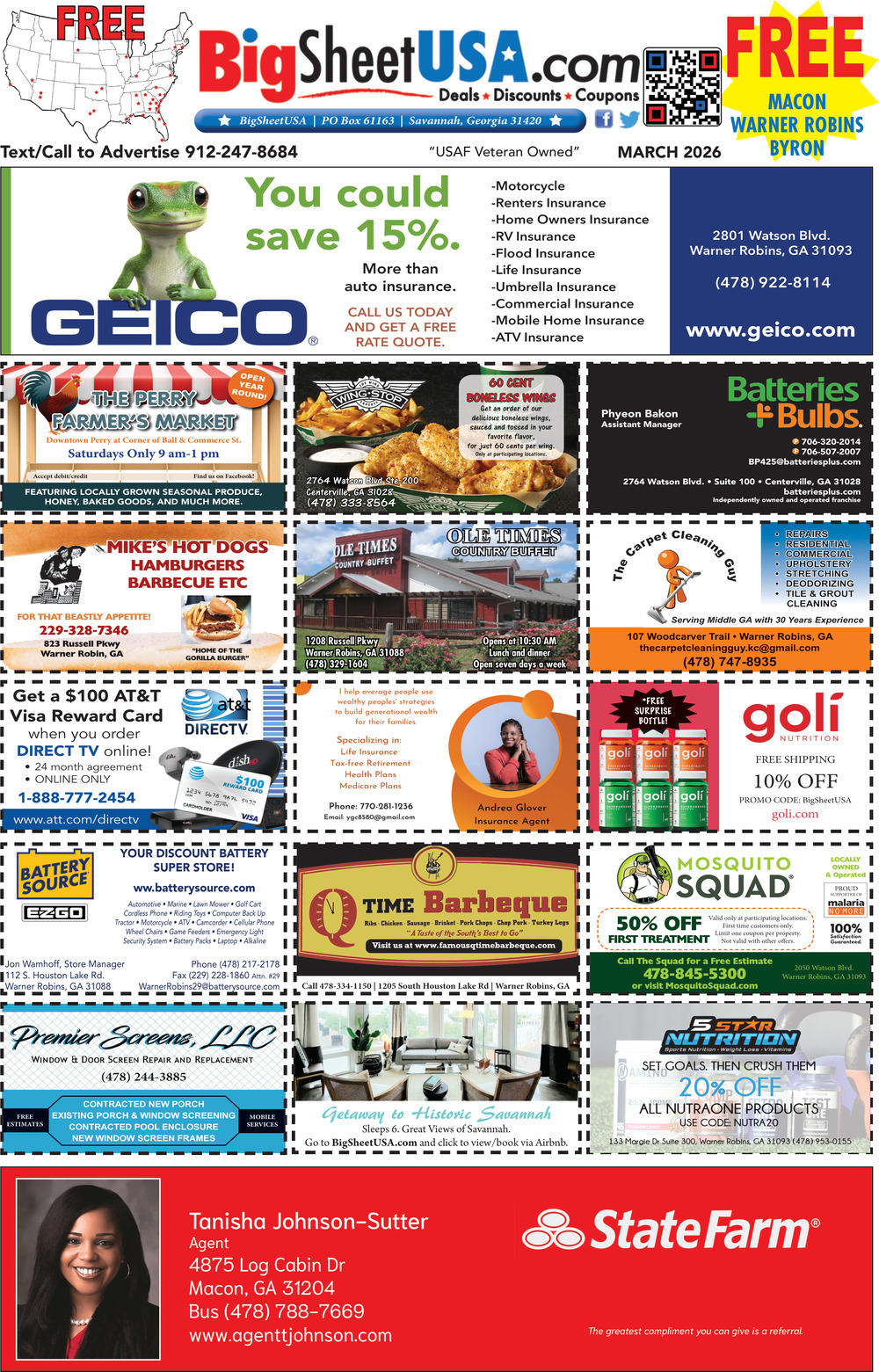 Mar 09, 2026. Big Sheet USA Print / Advertising Ads from Macon - Warner Robins - Byron
